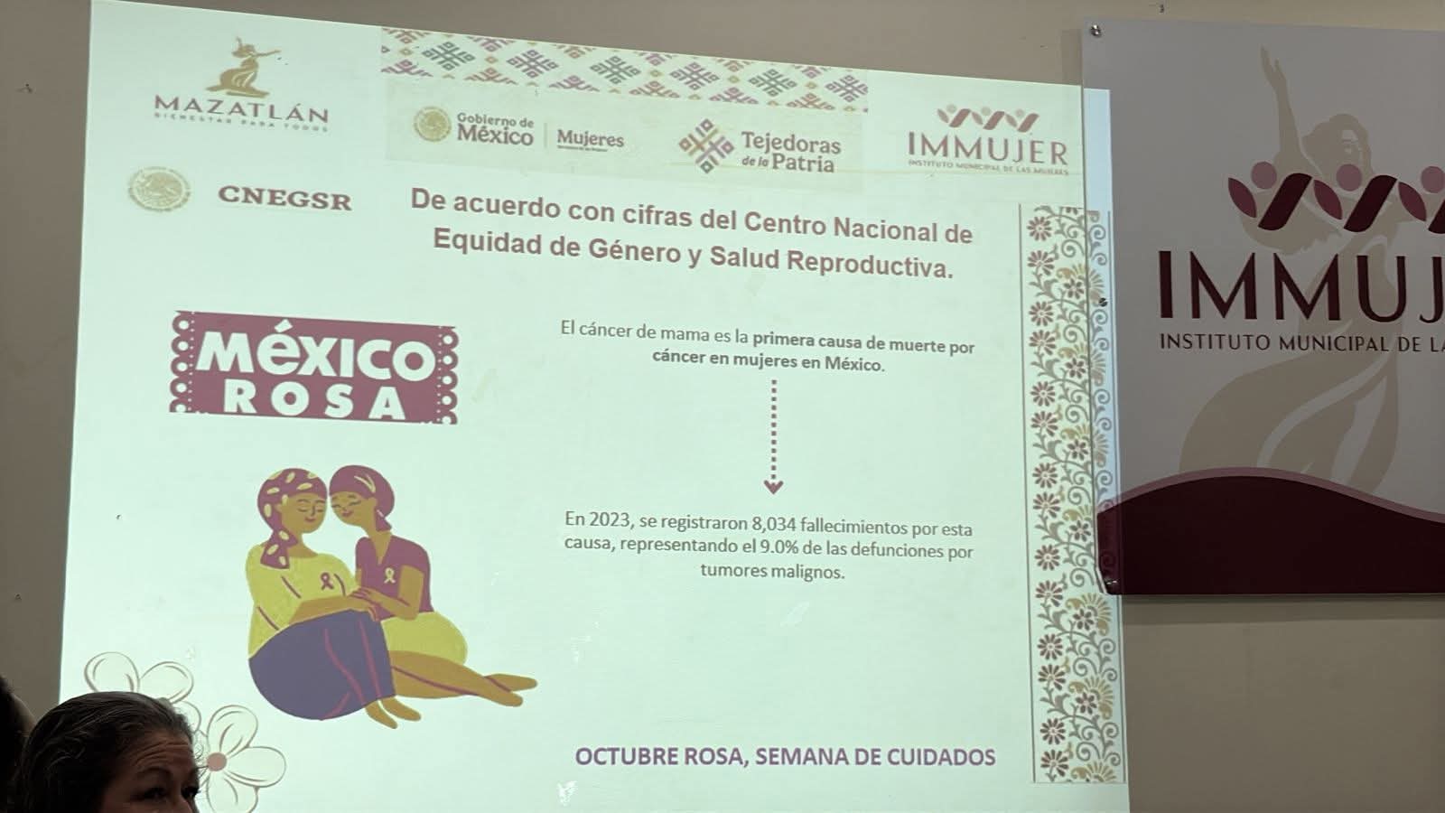 Como parte de las actividades del Instituto Municipal de las Mujeres y que conforman la semana Rosa, en la lucha contra el cáncer de mama, se llevan a cabo platicas dirigidas a Mujeres de colonias populares. Para informar así acerca de su prevención y entender sus riesgos.