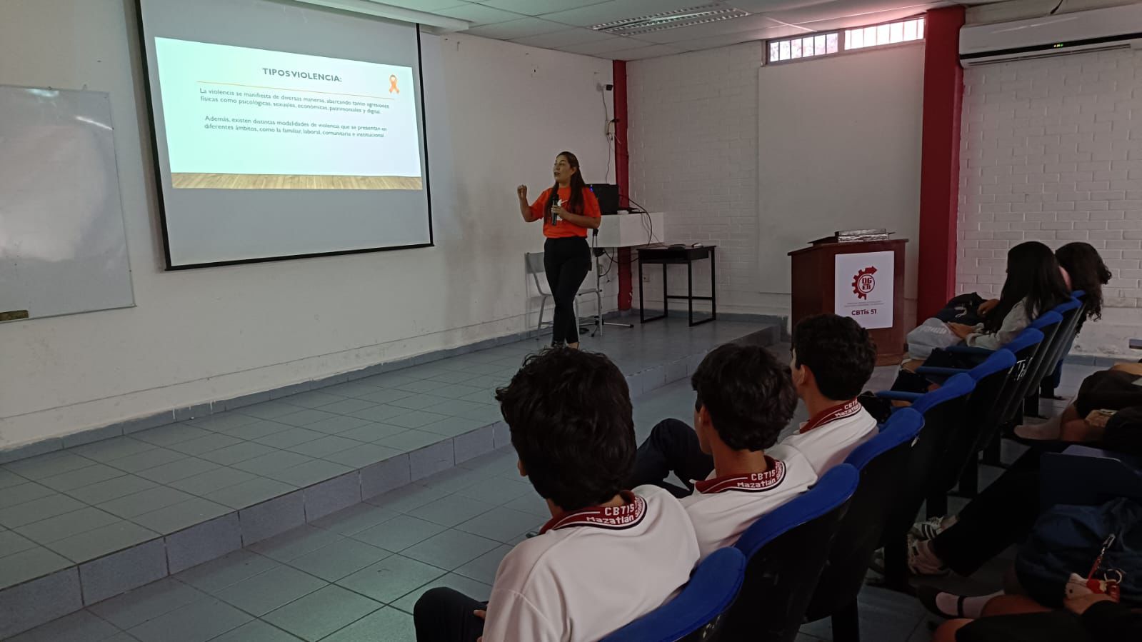 Esta actividad forma parte de las acciones integrales desarrolladas en el marco de los 16 Días de Activismo contra la Violencia hacia las Mujeres, con el objetivo de prevenir, informar y fortalecer la protección de la juventud mazatleca.